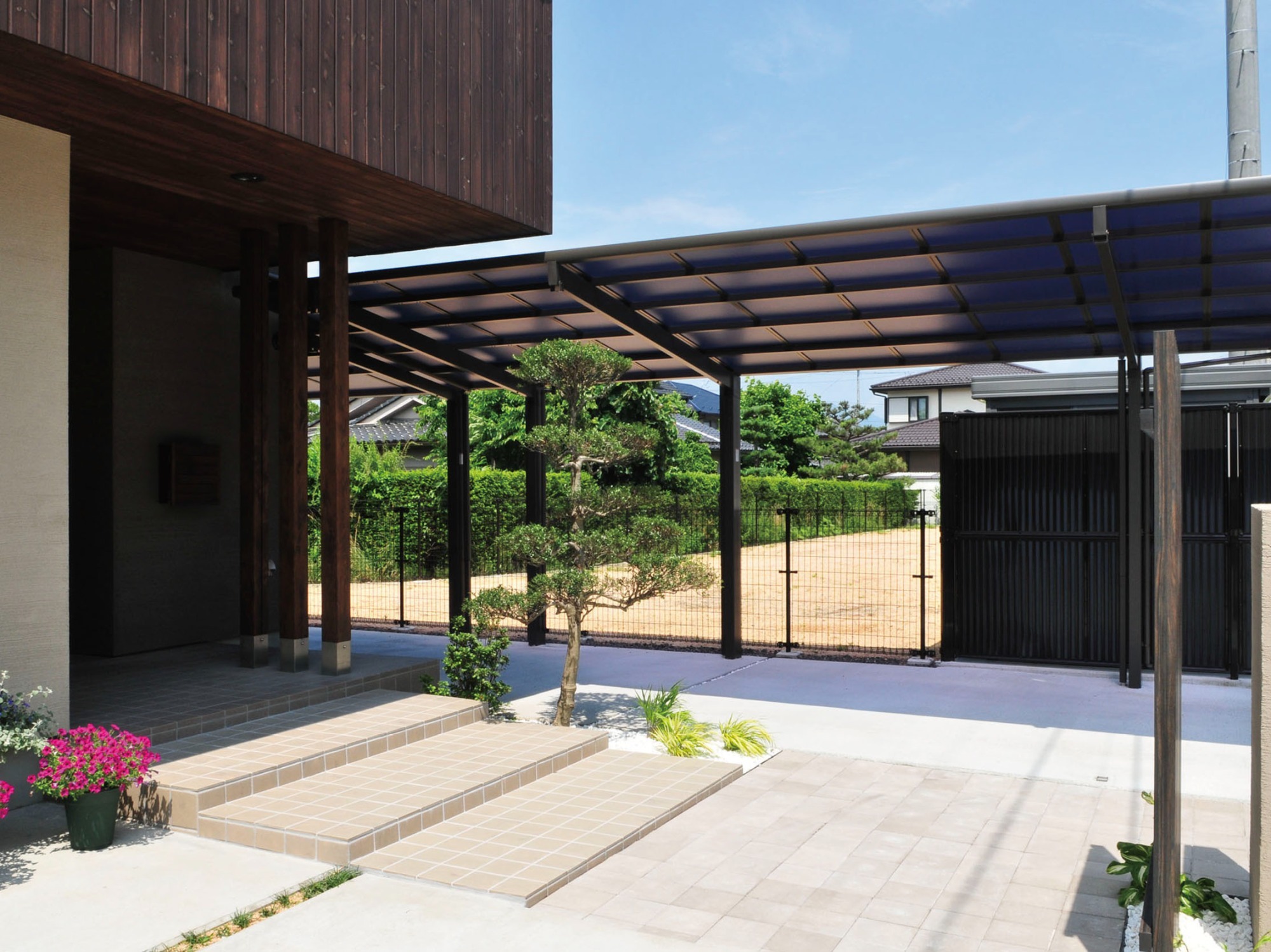 トータルコーディネイトガーデン、駐車場、アプローチ、フェンス、花壇、植栽スペース