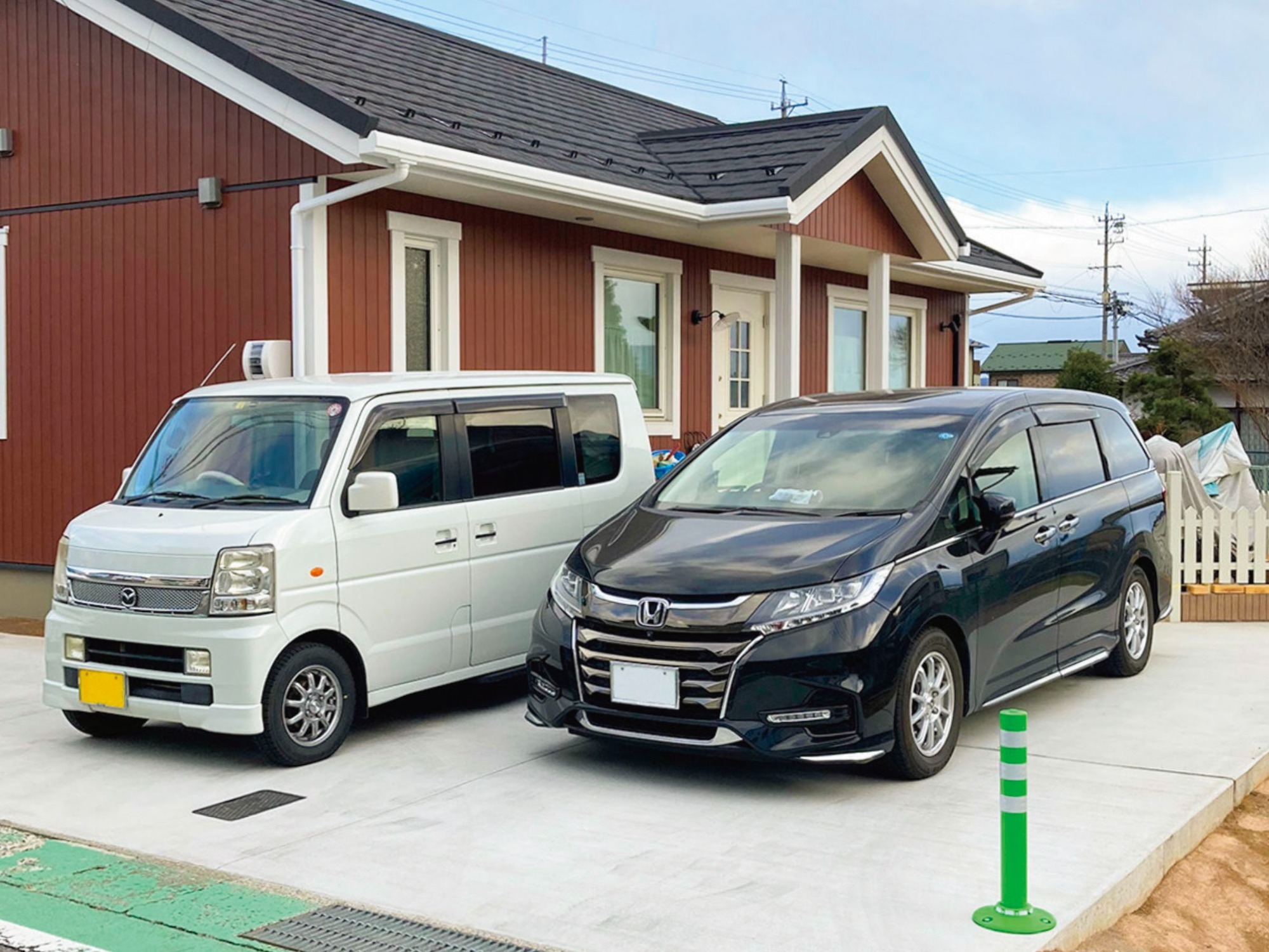 また、門扉前の土間コンクリートは大型車でもバックドアを大きく開けられるよう斜めにデザイン。