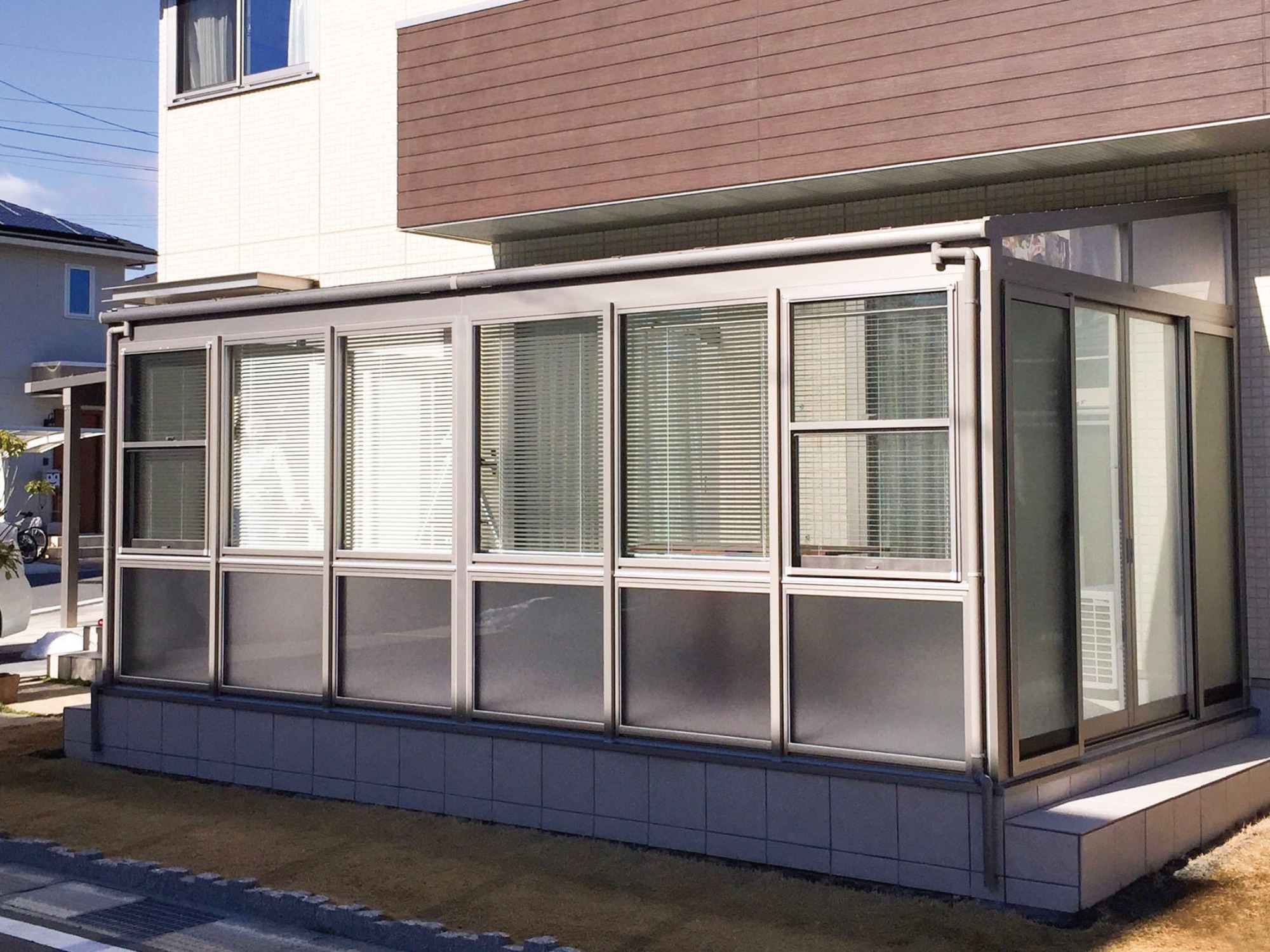 アルミテラスだけだと雨が吹き込む為、既存・リニューアルで施工ができないかという要望でした。