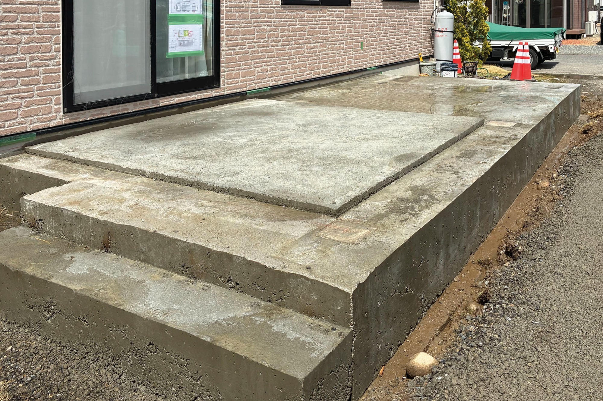 そして、次はいよいよお楽しみの「タイル工事」です。無機質なコンクリートの土間にタイルが彩りを添えることで、建物との一体感がさらに高まり、高級感のあるテラスへと変身します。職人の手によって一つずつ丁寧に仕上げていく、完成直前のラストスパート。