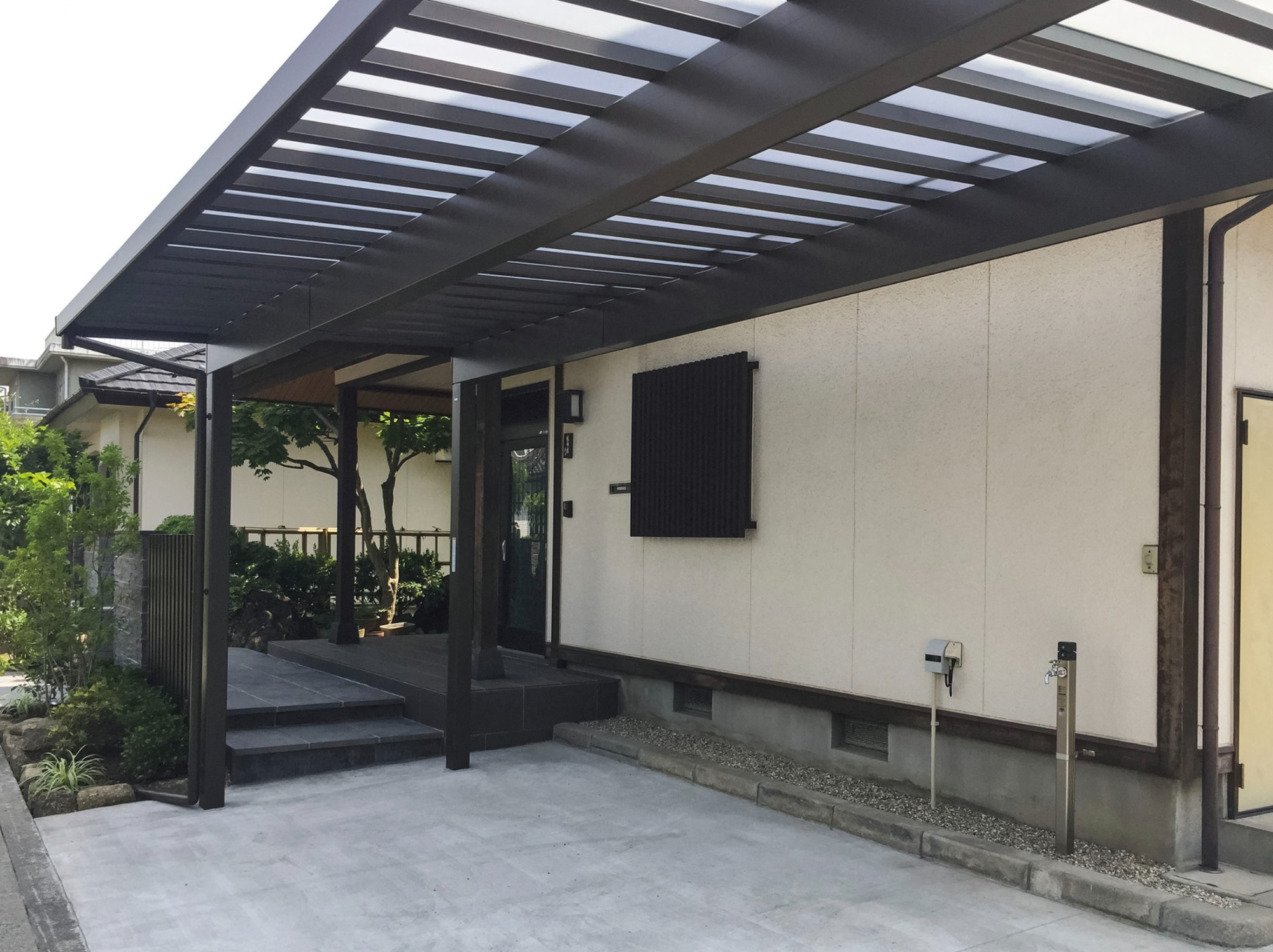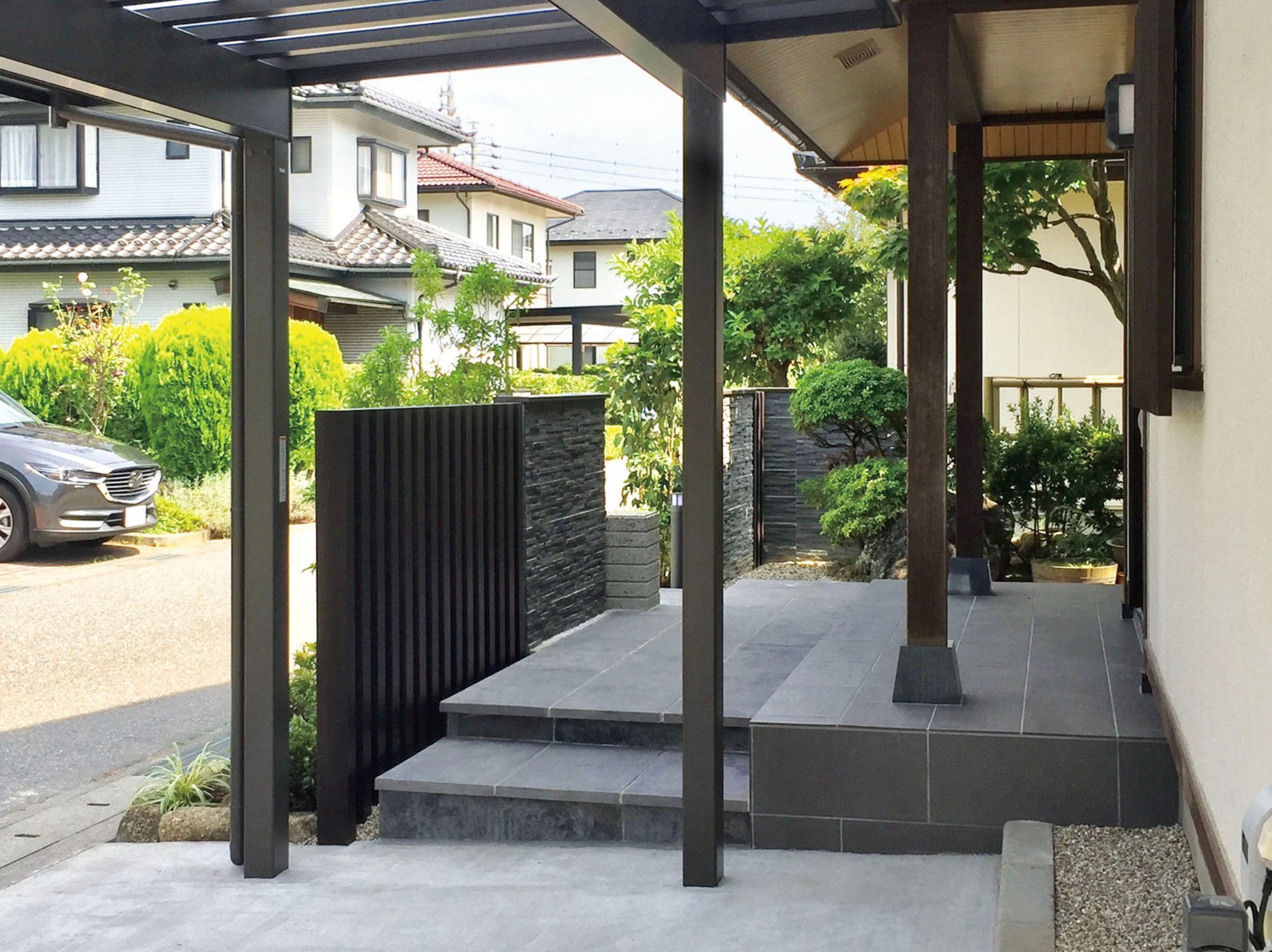 カーポートと玄関廻り リ・ガーデン(松本市)