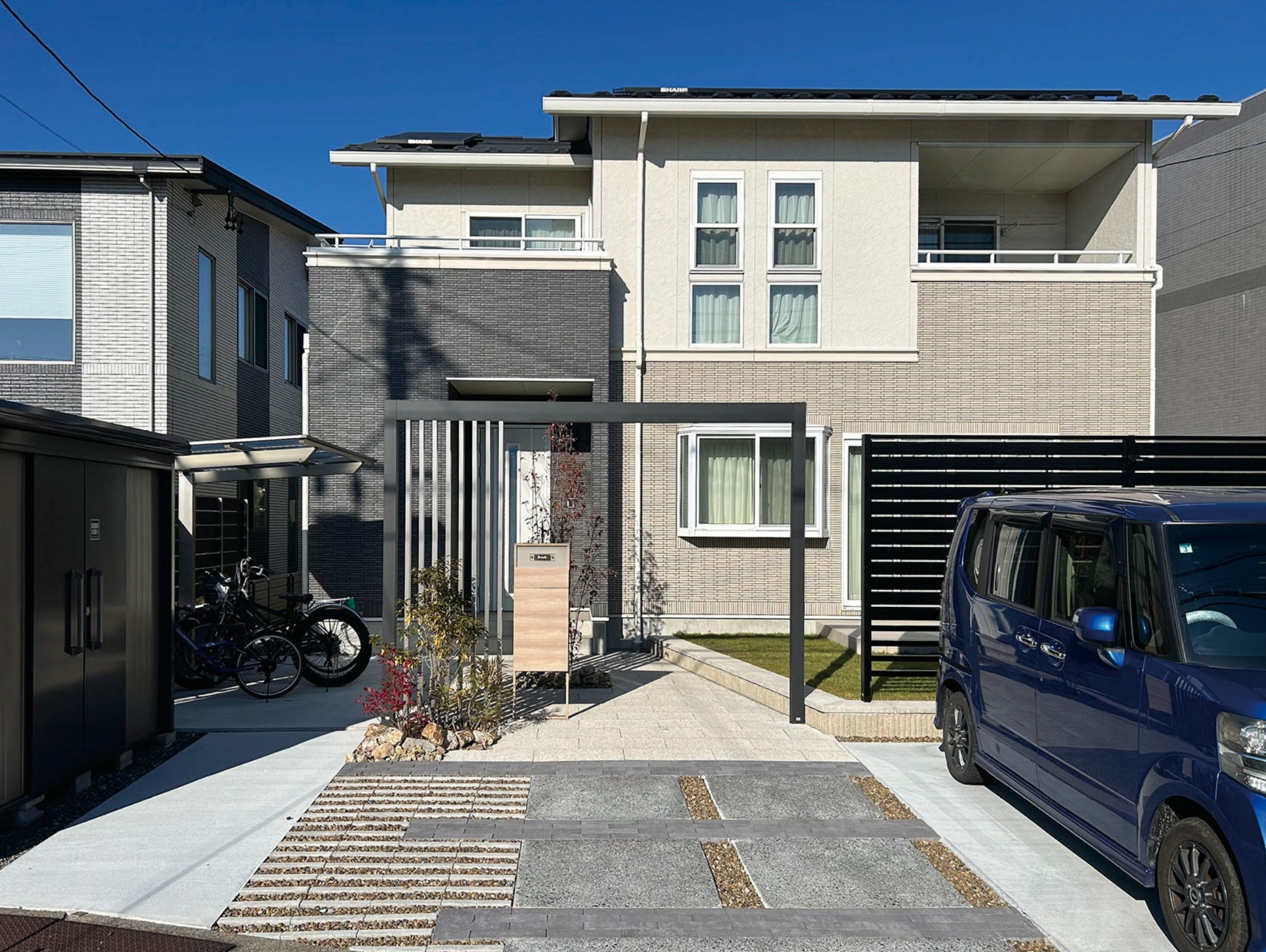 完成が近づくにつれ、帰ってくるのが楽しみだったと御主人。外構ができると違う家になったとのお喜びの声をいただきました。