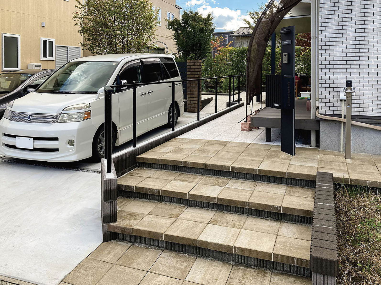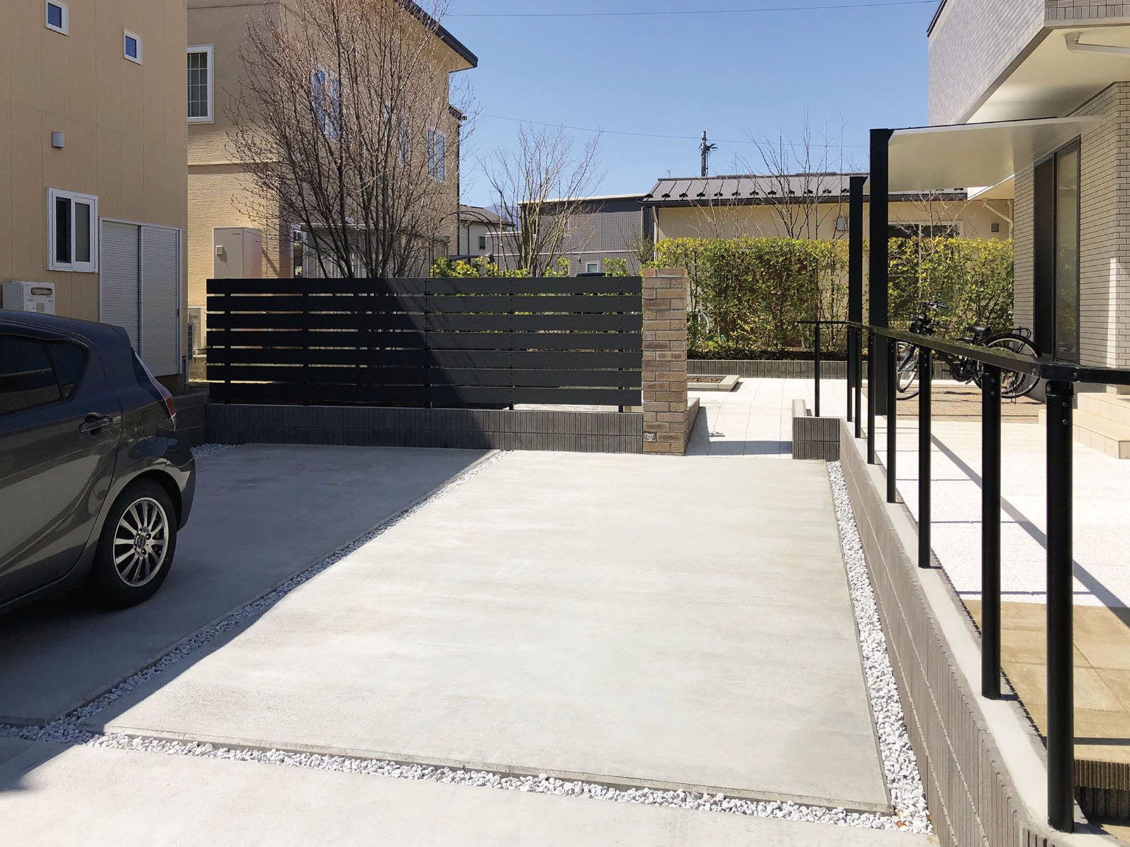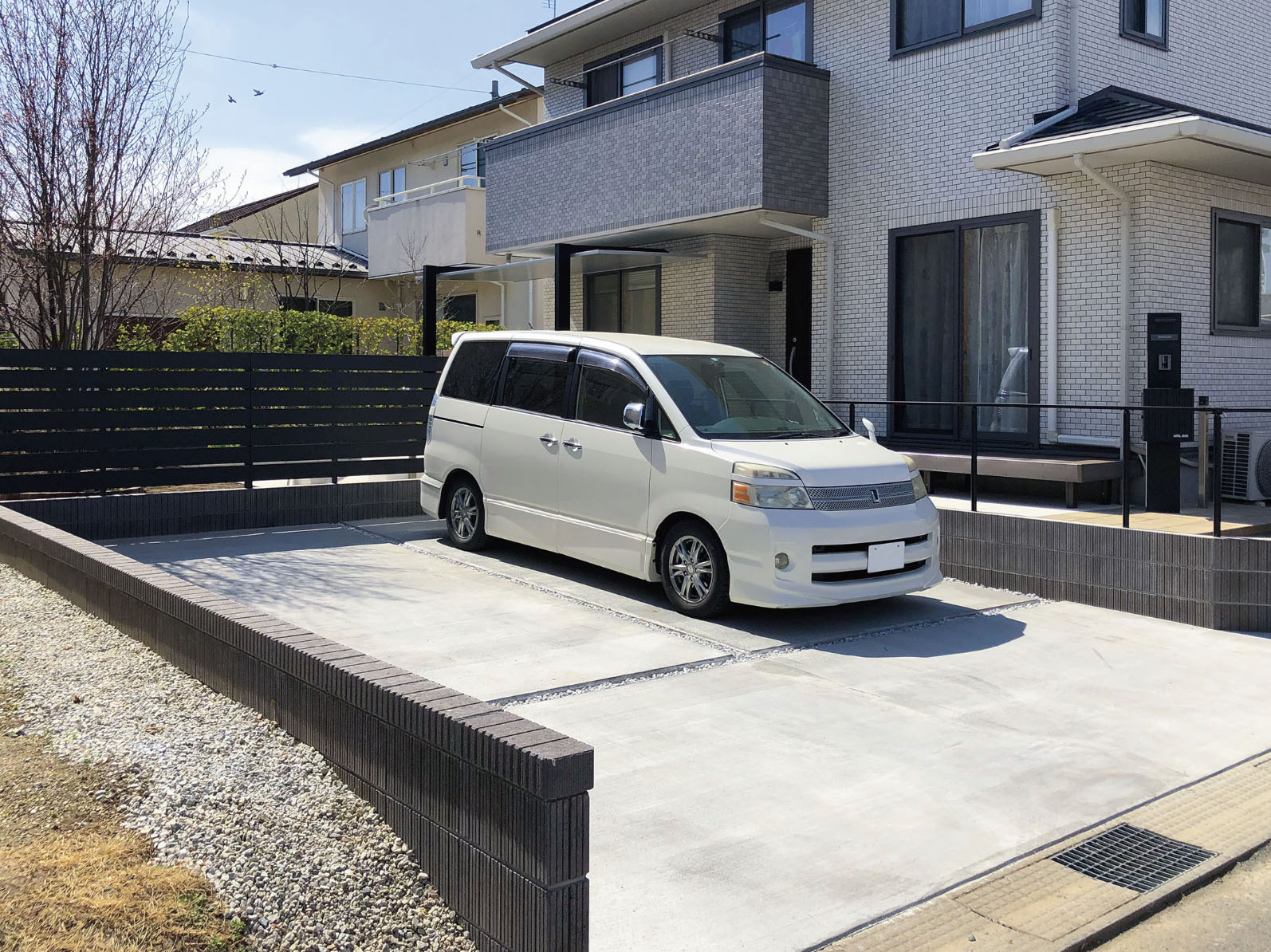 Y様邸では、これまで駐車スペースが砂利と土のままでしたので、雨の日には足元がぐちゃぐちゃになり、車の乗り降りのたびに靴が汚れてしまうことが大きな悩みだったとご主人からお聞きしました。特に小さなお子様やご家族の来客がある際には、毎回気を使わなければならず、不便さを感じておられたそうです。