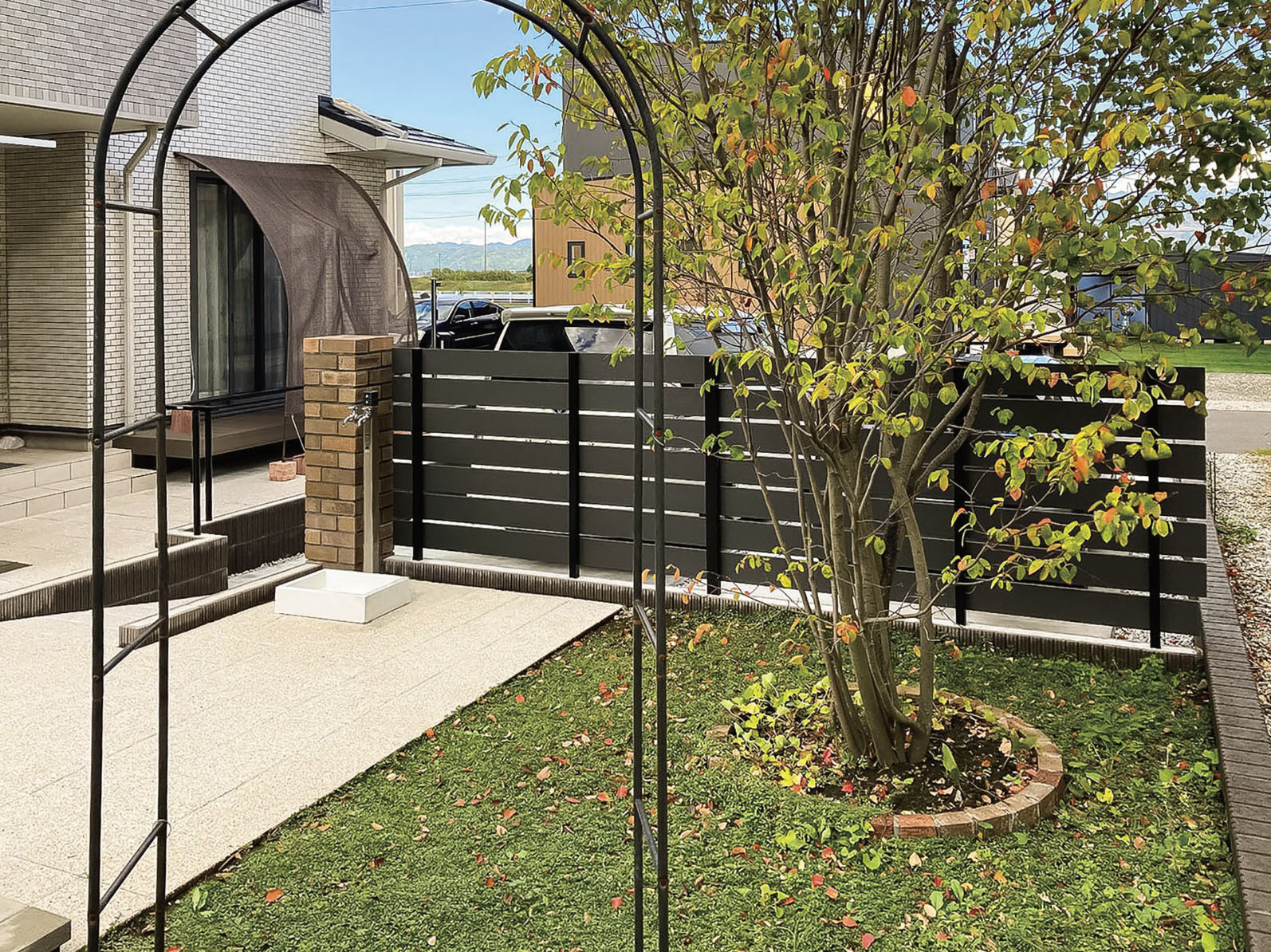 また、これまでお隣との境界線が曖昧で、お互いにどこまで掃除をすればよいのか気を遣うことが多かったそうですが、化粧ブロックを設けたことで境界が明確に。気兼ねなくお庭のお手入れができるようになったとお話しくださいました。