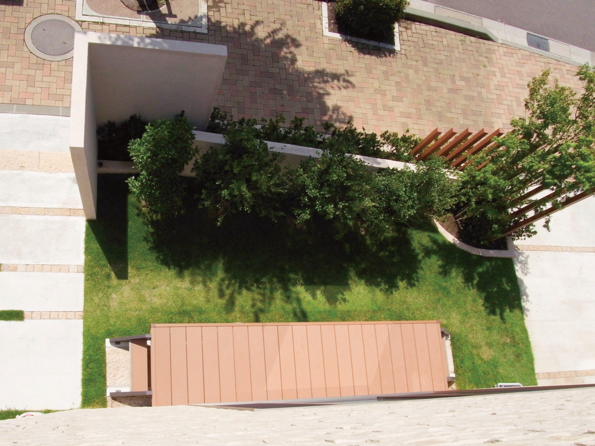 トータルコーディネート/門柱/アプローチ/駐車場/植栽/人工木《LIXIL 樹ら楽ステージ》/みかげ石